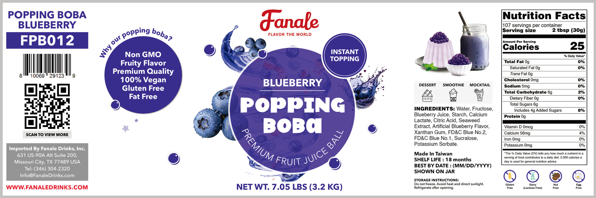 Approximately calories per serving of popping boba is about 30 kCal so you can enjoy these little things. It comes in about 12-14% real fruit juice where it also provides some vitamins from. The coating of these popping boba is made of seaweed extra, where it is actually really high in fiber.